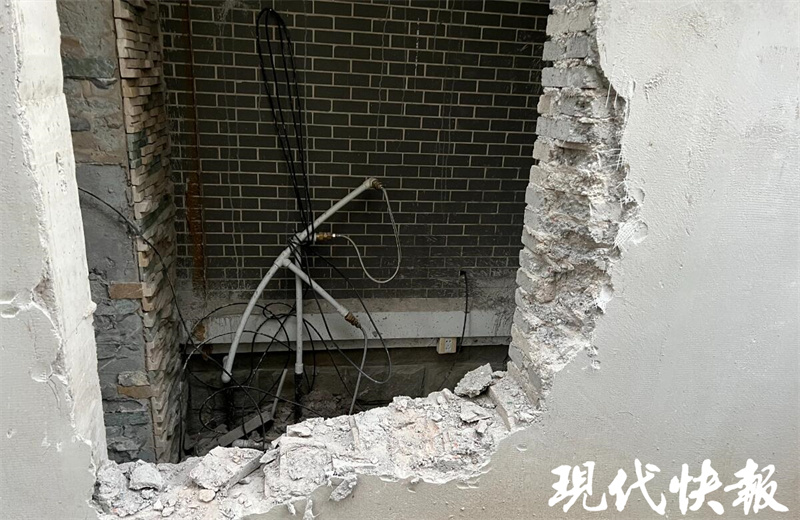 近日,朱先生向现代快报反映后,记者来到现场,发现朱先生的别墅多处墙体有窟窿,部分钢筋露出。朱先生说,这些窟窿就是李某某带的人砸坏的。在朱先生提供的多份录音中,其中一段李某某表示,由于朱先生家装修违建过分,才带人到朱先生家砸墙拆脚手架。记者多次拨打李某某的手机,但一直处于通话中,发短信也未得到回应。