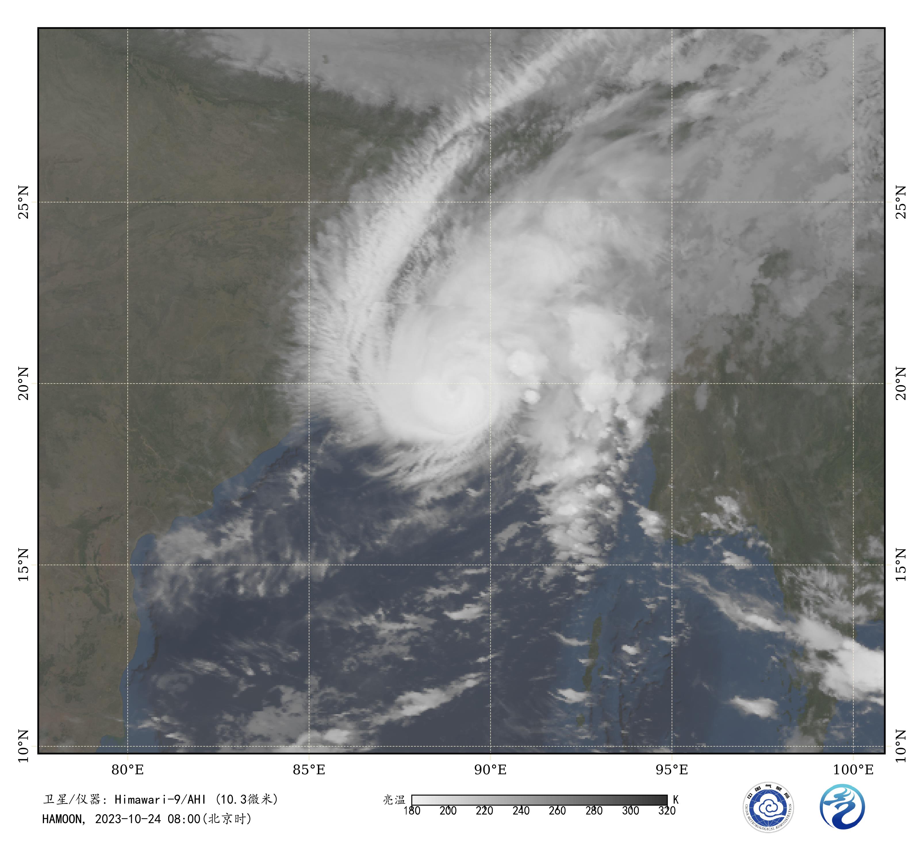 图1卫星红外监测图像(北京时间2023年10月24日08时00分)