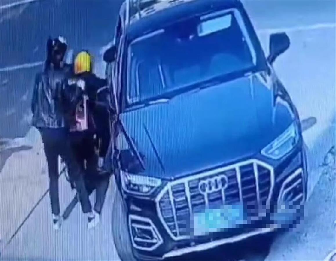 现场视频显示,一辆奥迪车上的人疑与一名骑着电动车的外卖员发生了口角。奥迪车后座的男子伸出手一把抓住外卖员,并一拳打中其头部,外卖员倒在了车上。随后,奥迪车驾驶座下来一名女子,将外卖员和电动车一起推倒,随后开车扬长而去。