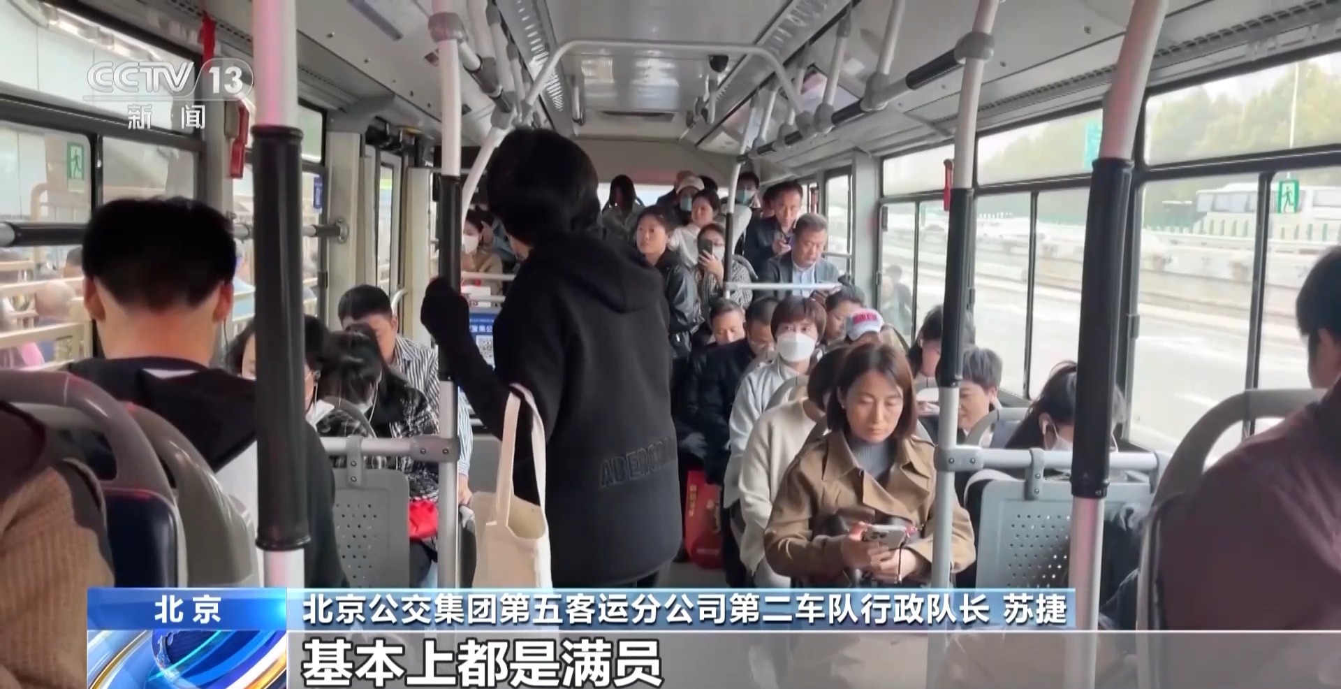 北京公交集团第五客运分公司第二车队行政队长 苏捷:在上下班期间,我们增加车次运送乘客,平均每3分钟就有一趟车发出,基本上都是满员。