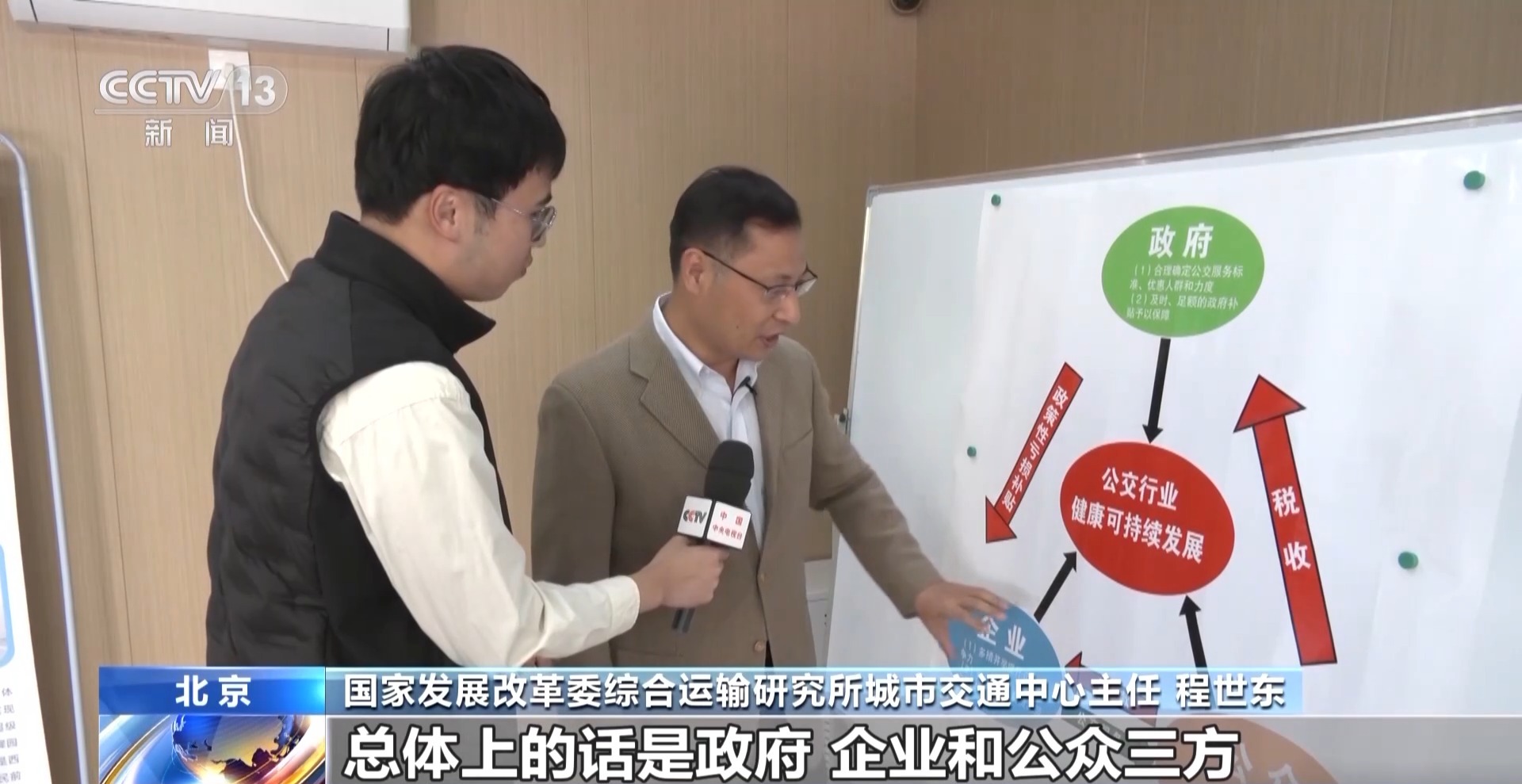 国家发展改革委综合运输研究所城市交通中心主任 程世东:总体上是政府、企业和公众三方共同努力来实现可持续发展,政府首先要根据现在的客流情况以及自身的财力确定发车频次、优惠的人群和优惠的力度。要加大公交专用道、信号优先灯设置,保障公交的速度和准时性。企业要利用自身的资源去多元增收,提高公交的竞争力和吸引力,从而让老百姓更多地来选择公交。