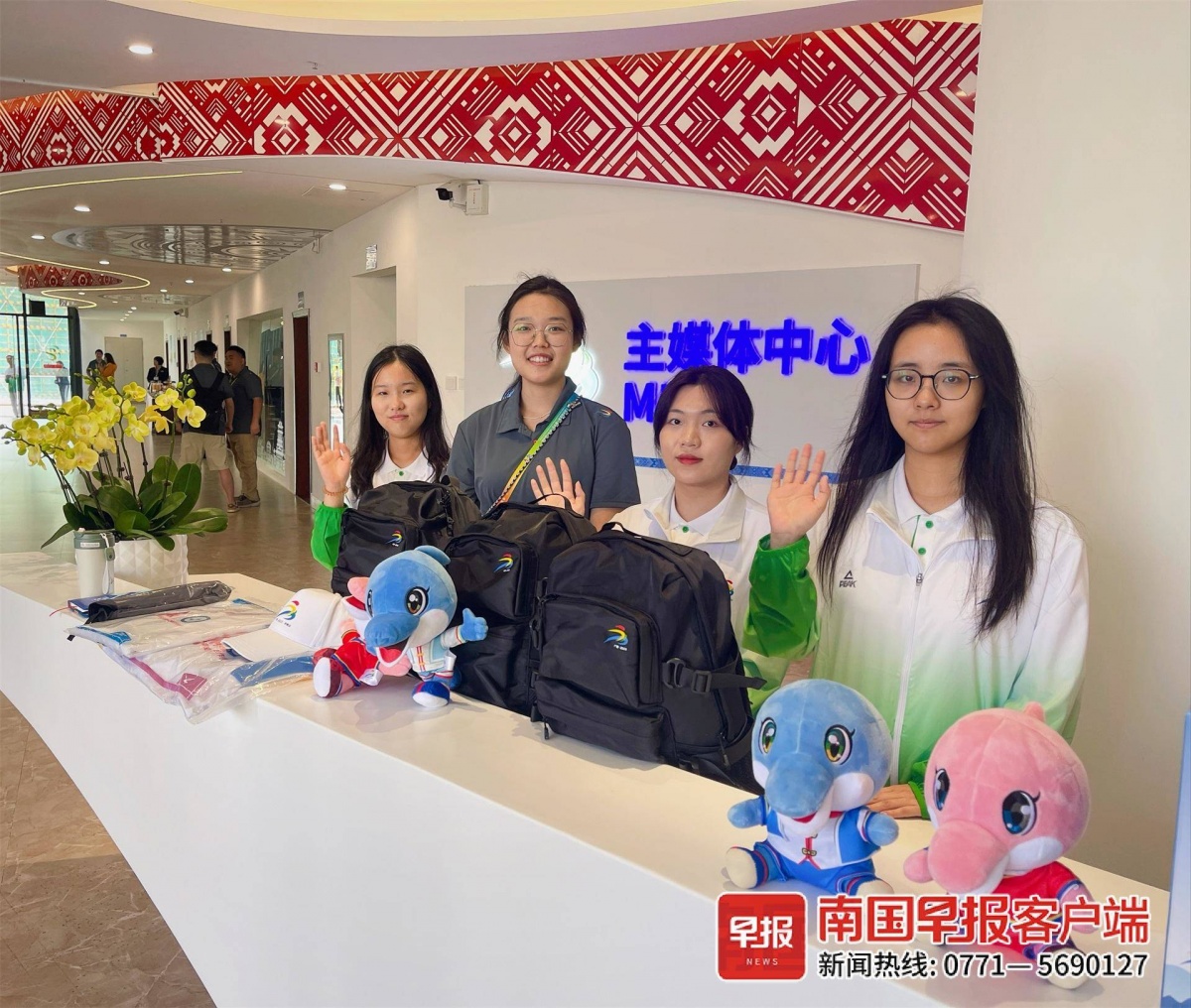南国早报全媒体记者在学青会主媒体中心看到,中心的装修设计以学青会主题为主,吉祥物“壮壮”“美美”的形象随处可见。此外,空间设计还融入了广西民族文化中的铜鼓、绣球、壮锦等元素,让人感受到鲜明的广西特色。
