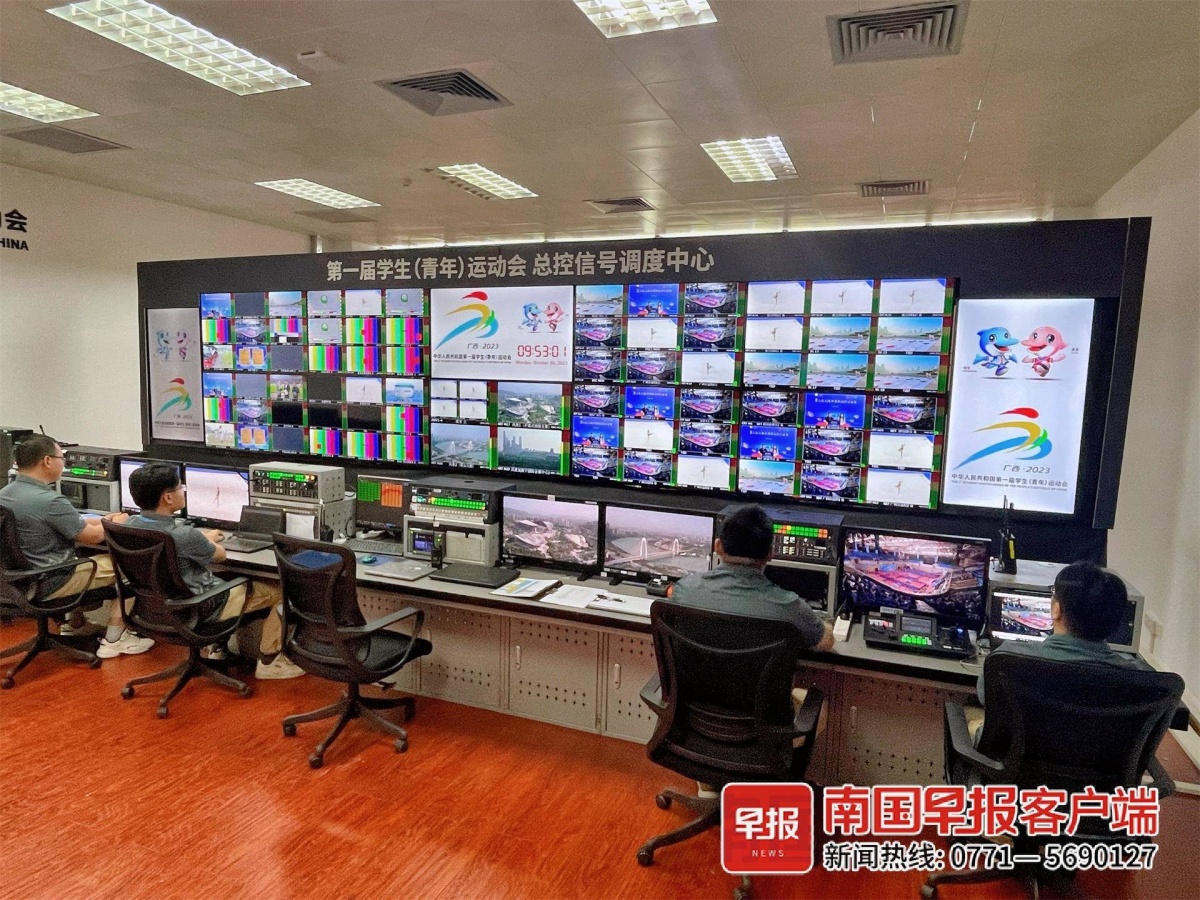 ▲第一届全国学生(青年)运动会主媒体中心总控信号调度中心。