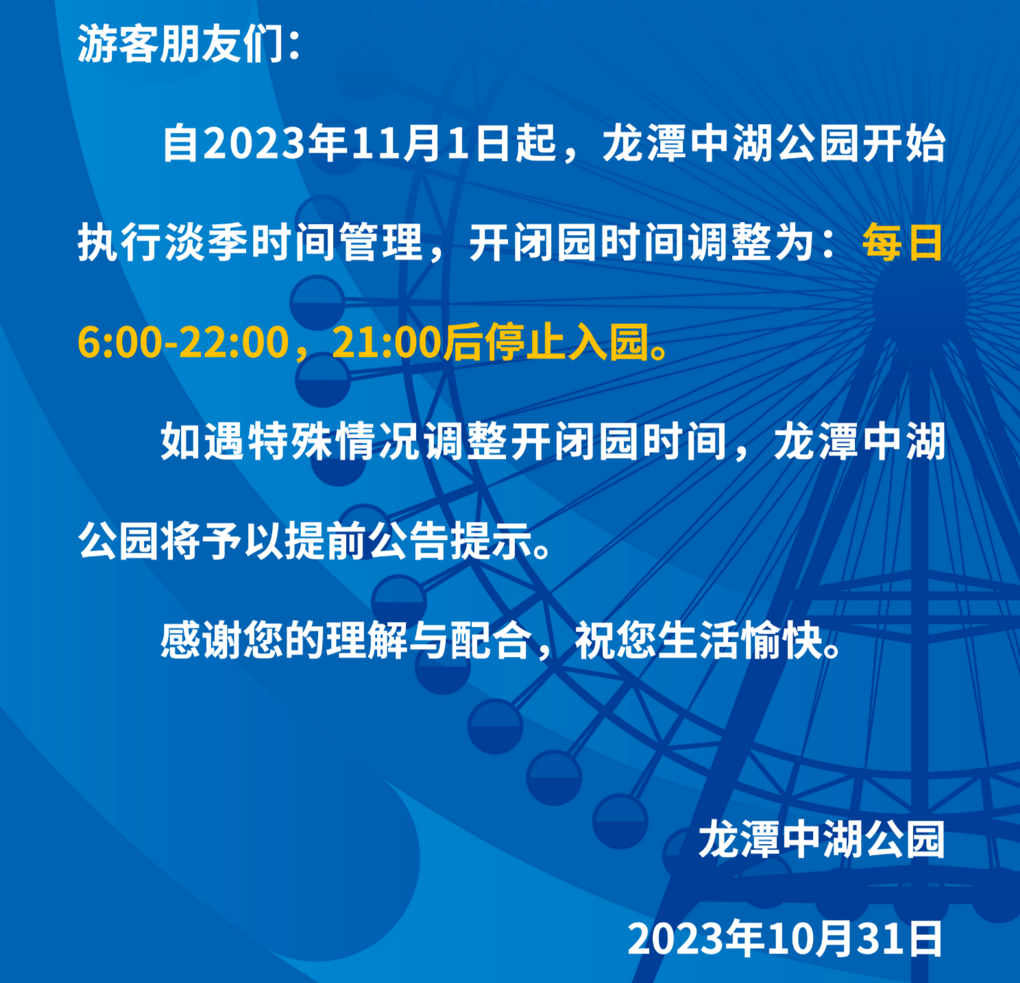 11月1日起,龙潭中湖公园实行淡季时间管理