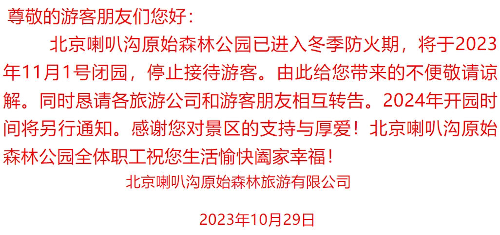 11月1号起,北京喇叭沟原始森林公园实行闭园管理