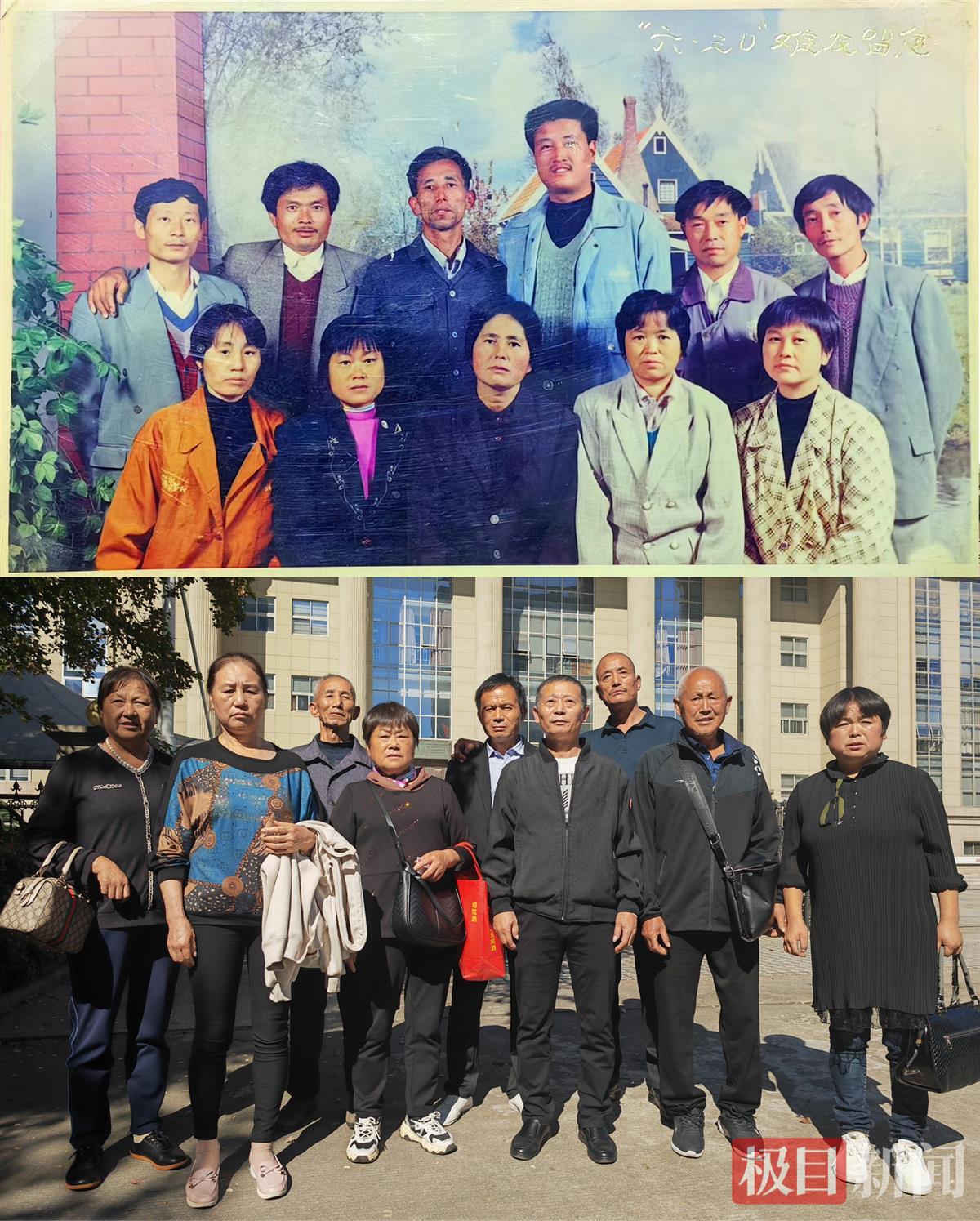 遇难者家属26年前合影(上)和26年后在法院门前的合影(下)