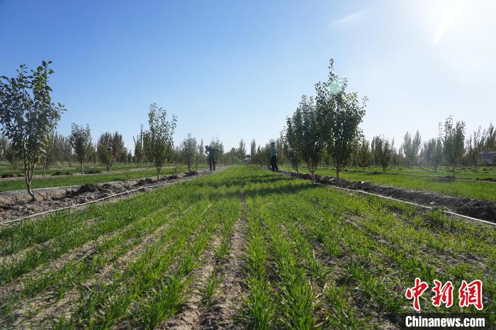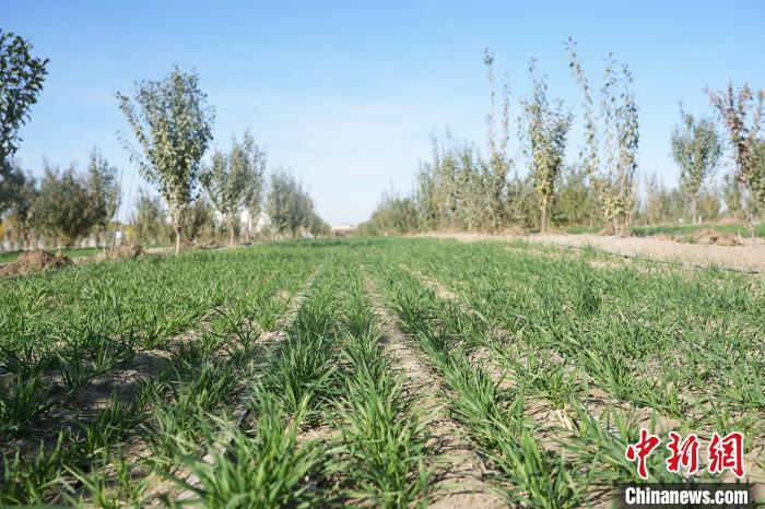 时下,走进新疆生产建设兵团第十四师225团果园,一行行今秋播种的冬小麦陆续出苗显行,长势喜人。放眼望去,绿油油的麦田呈现一派生机勃勃的景象,犹如给广袤农田铺上绿色地毯。近年来,225团大力发展林下经济,探索多元化的林下产业套种模式,鼓励群众在桃树、西梅、苹果树下套种冬小麦、西瓜、油葵等农作物,用活林下资源,带动农业增效、群众增收,持续巩固拓展脱贫攻坚成果,有力助推乡村振兴。