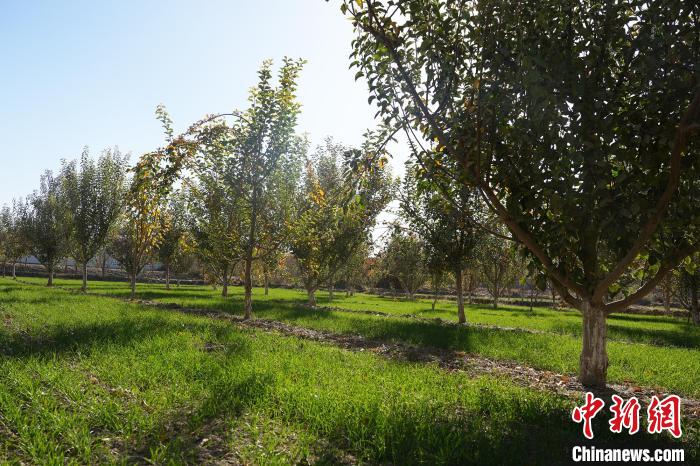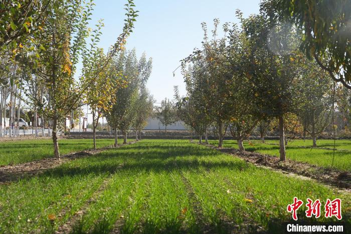 西梅树下,绿油油的小麦长势喜人。陈阳阳摄