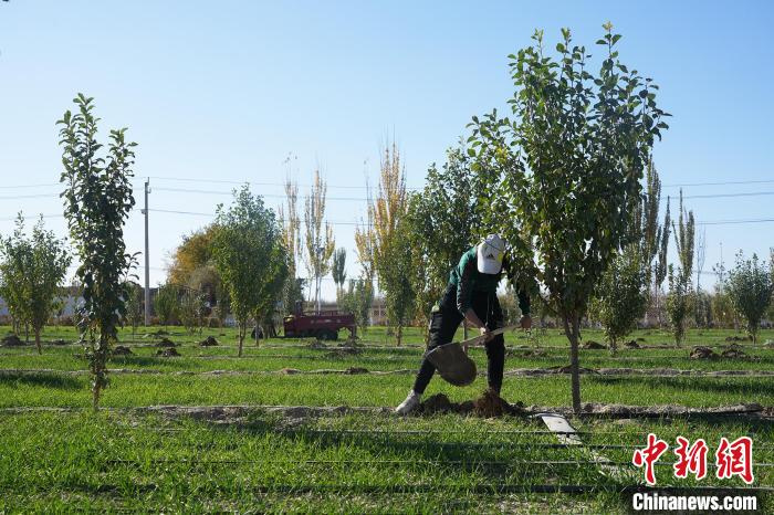 种植户正在给西梅树施加有机肥。陈阳阳摄