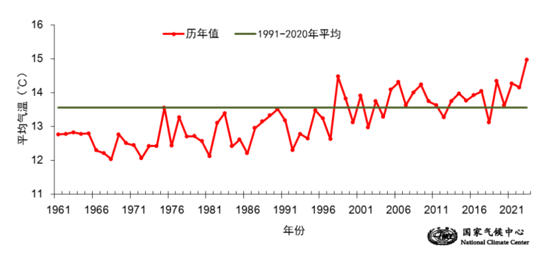 9月1日至11月1日全国平均气温(1961-2023年)