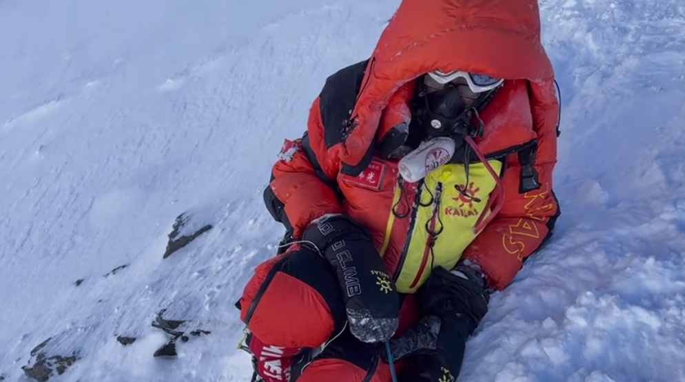 王先生还发出其他登山者路过拍下的现场视频。视频里,他努力在大口喘气,氧气面罩上只有一个呼吸气囊,气囊里边全是冰雪。