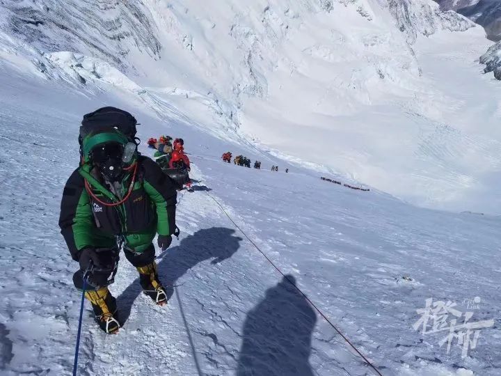 其中,有一个队伍中走在最前面的领导看到我没有氧气,他很惊讶,把他备份的崭新的氧气面罩和崭新的氧气给我换上了。我感激涕零。