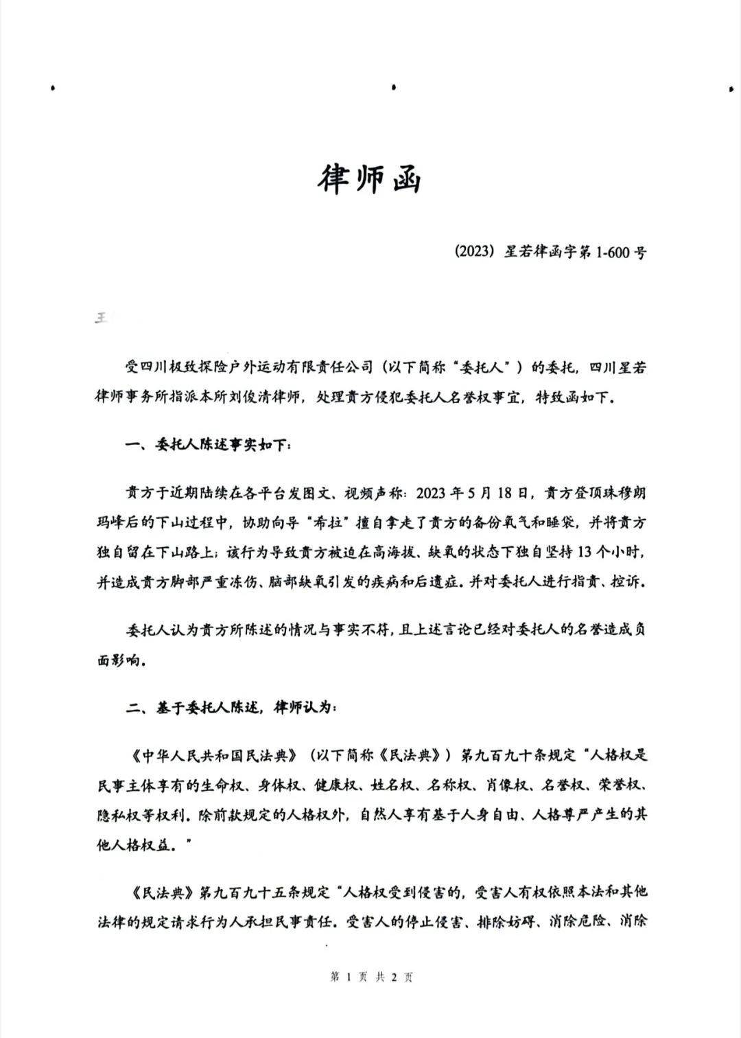 登山公司的律师函