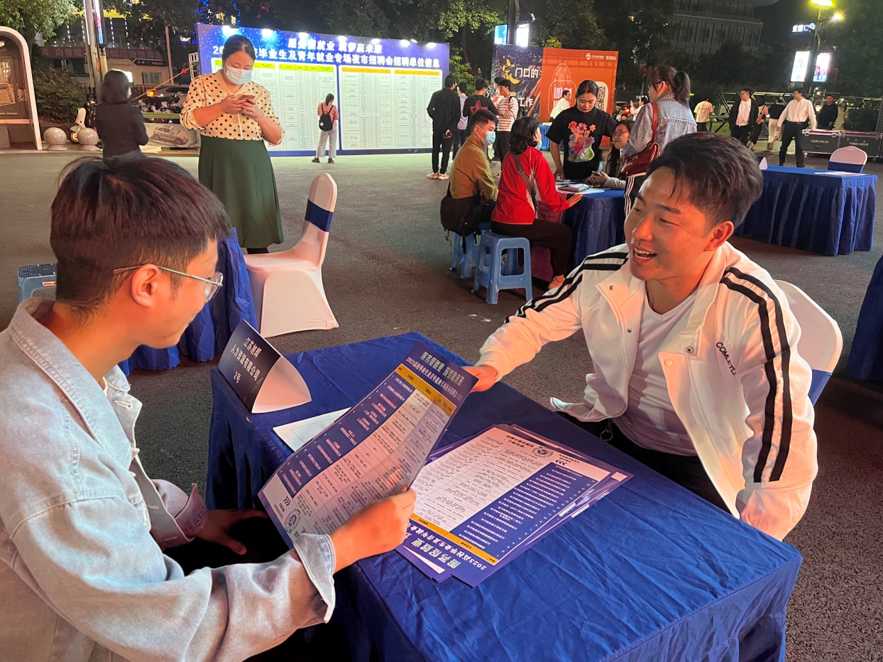 继今年8月底万达招聘夜市取得良好的成效后,镇江市人社局在金秋招聘月期间,再次为企业搭建了“摆摊求贤”的平台,以“烟火气”聚起就业服务“超人气”。此次招聘会,金东纸业、奇美化工和车驰汽车等30余家企业提供操作工、销售、设计师和工程师等1000余个岗位,涵盖生物医药、装备制造和新材料等行业,同时也为有灵活就业需求的群体提供相应岗位。现场,求职者们边逛街边找工作,招聘人员热情地推介着公司的岗位、福利待遇和工作内容,使出浑身解数“摆摊求贤”。