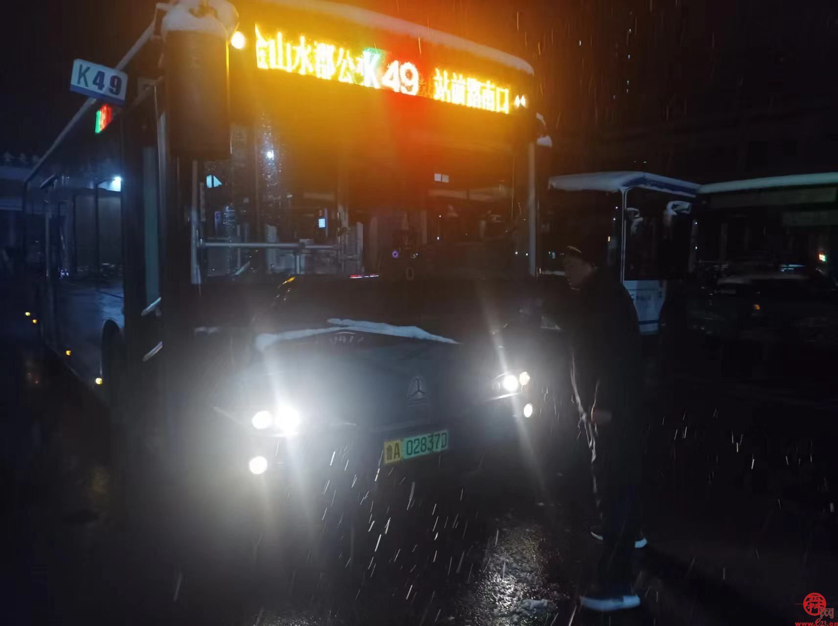 10日晚降雪开始后,济南公交迅速启动冬季雨雪天气应急预案,组织管理人员等上站上线,做好全时段综合检查,叮嘱驾驶员集中注意力,控制好车速,谨慎驾驶。同时提前备好备足应急物资和铲冰除雪设备,组建应急突击队,在雨雪恶劣天气,及时到易滑、积雪路段和相关站点清除积雪,进行防滑作业,保障车辆安全运行,为市民安全出行保驾护航。