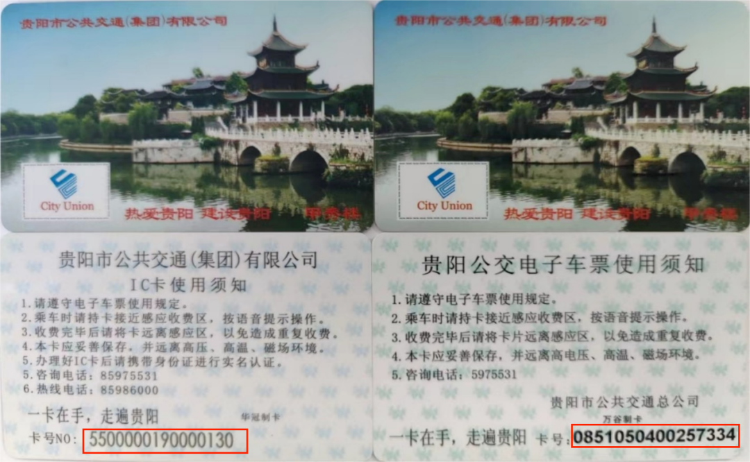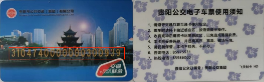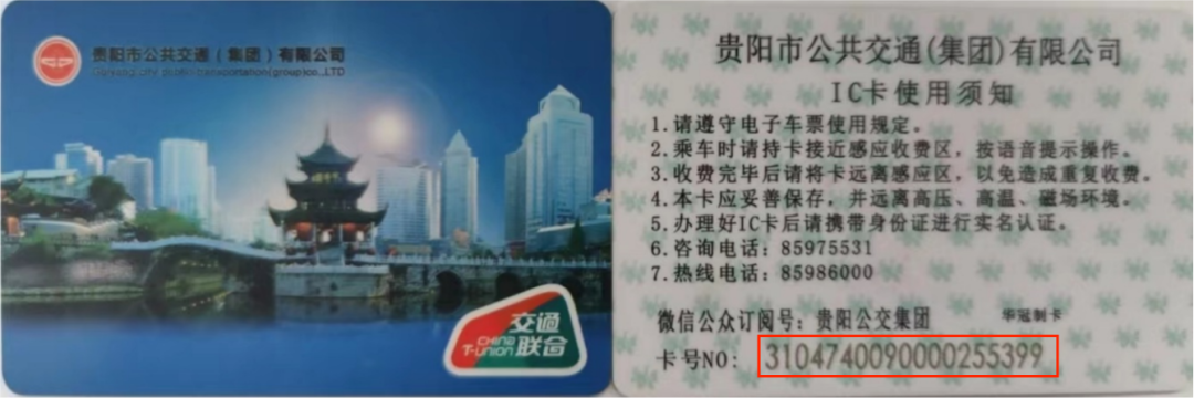 3.贵阳公交交联本地卡(31047400开头的卡号在卡片背面)