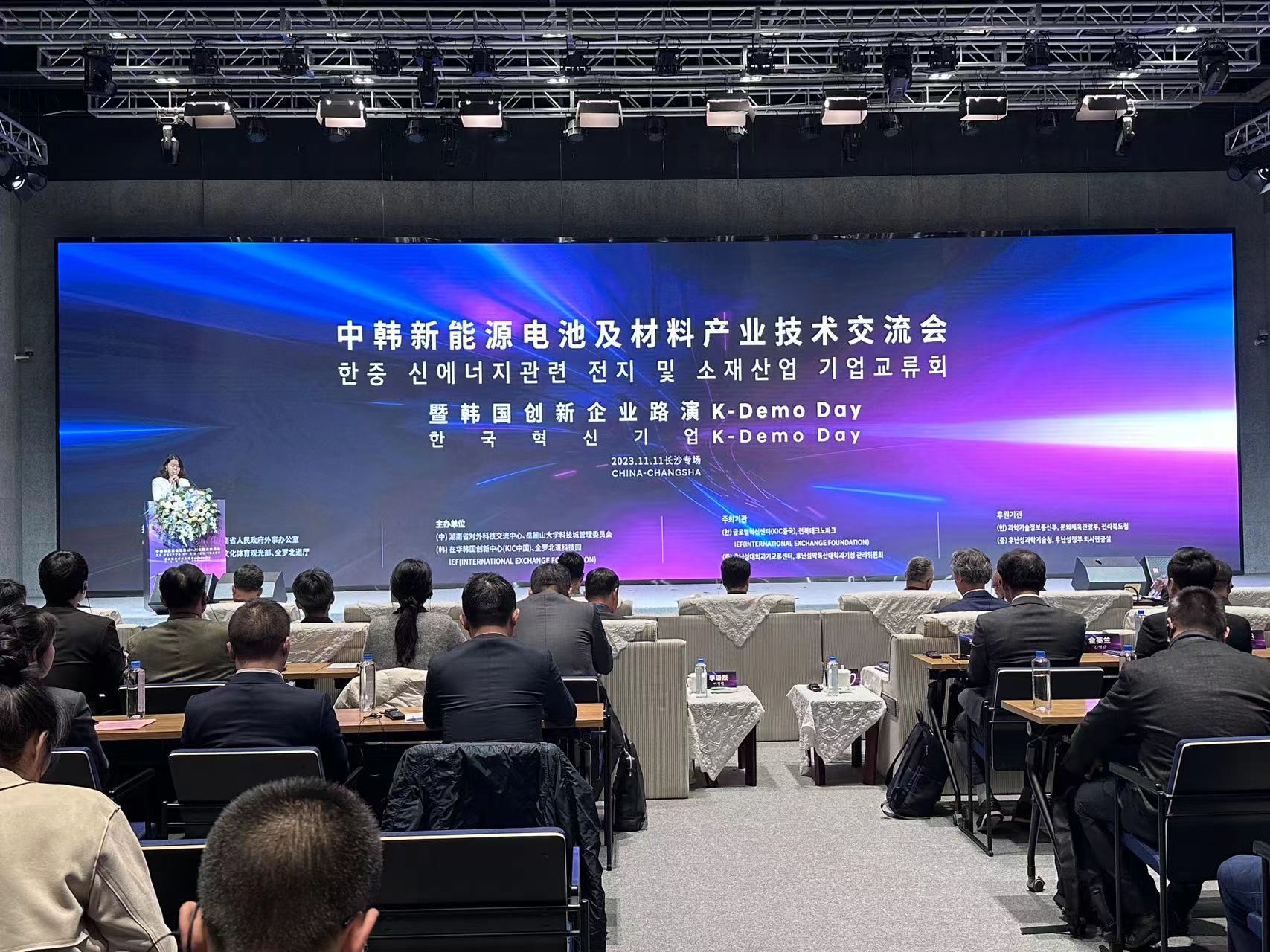 11月11日,中韩新能源电池及材料产业技术交流会暨韩国创新企业路演K-DemoDay长沙专场活动举行。湖南省副省长秦国文、韩国全罗北道道知事金宽永出席开幕式并致辞,中国驻韩国大使馆科技参赞张楠线上致辞。会上,在华韩国创新中心(KIC中国)、全罗北道科技园、岳麓山大科城管委会三方基于共促科技创新合作和科技企业发展签订合作协议。