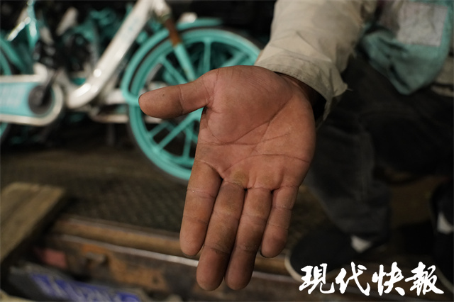 刘仁帆告诉记者,单车运维有很多工种,比如整理、调度、维修等,他选择了找车。这个活需要各处走,还要把车搬来搬去,很累,但是时间自由,按件计薪、多劳多得。