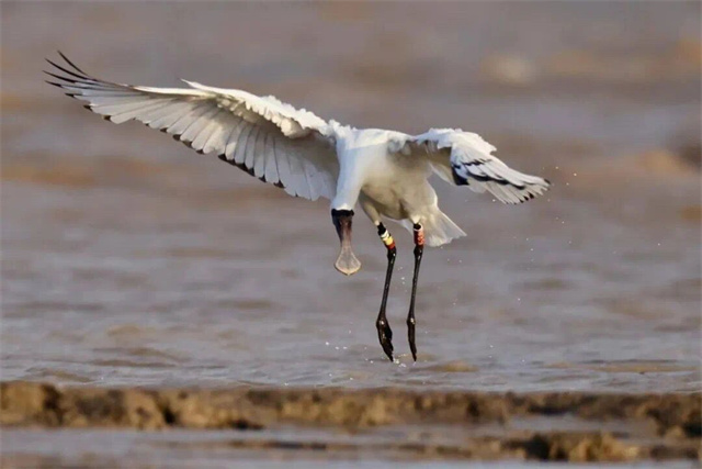 现代快报讯(通讯员 李东明 记者 王菲)水波荡漾,飞鸟翱翔。连日来,大批越冬候鸟来到盐城东台条子泥湿地中转、补给,其中包括国家一级重点保护野生动物——黑脸琵鹭。