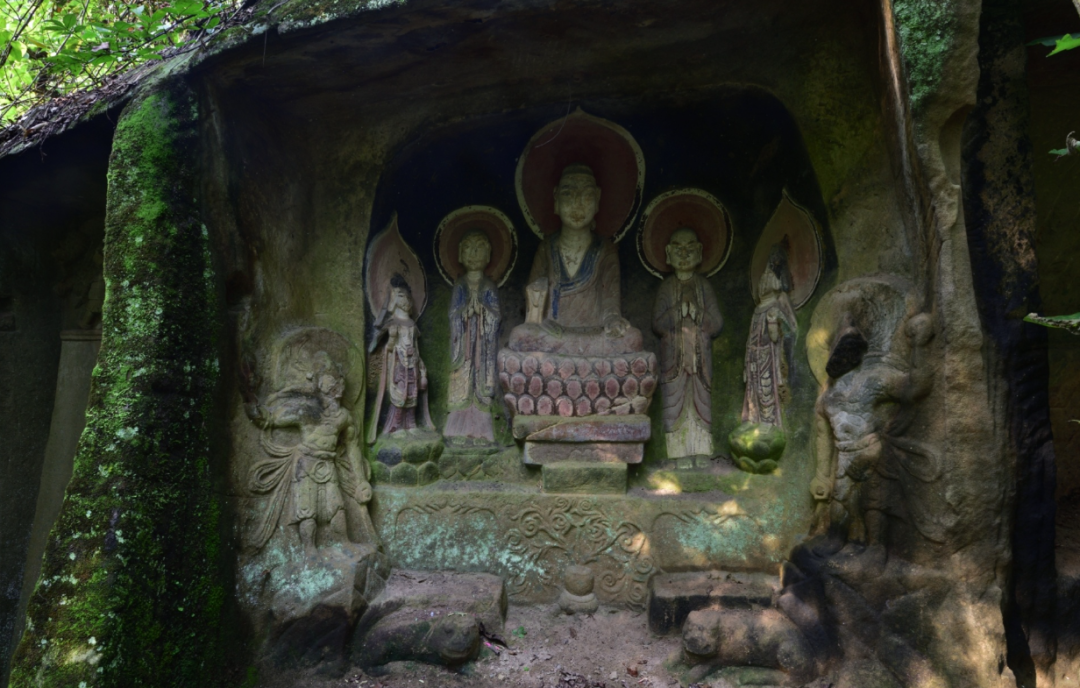南江县一摩崖造像被涂抹后(图上)和被涂抹前(图下)