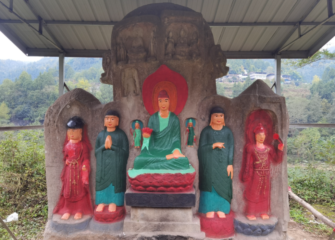 对石飞河部分摩崖造像涂色“穿衣还愿”