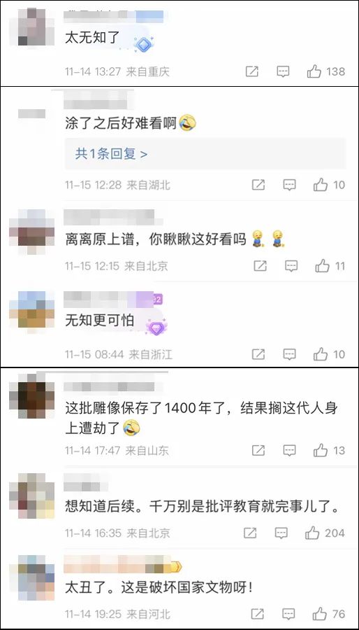 当地另一处摩崖造像被涂抹后(图上)和被涂抹前(图下)