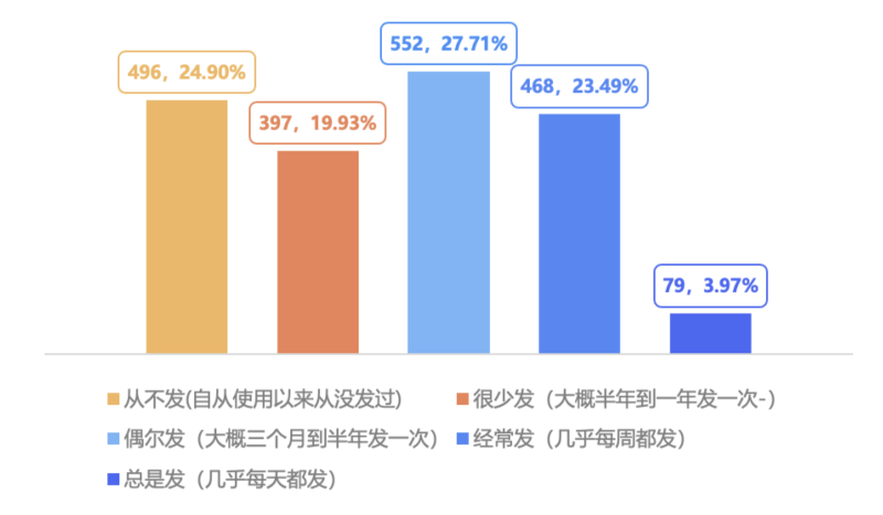 ▲图2:发布短视频的频率。图/《老年人情感关怀与短视频使用价值研究报告》截图