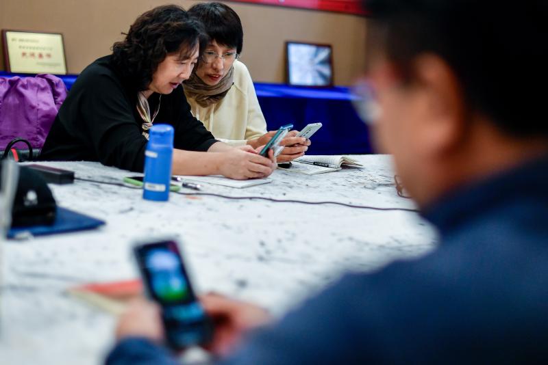 ▲ 近年来,吉林省社区老年大学有针对性地增设智能手机应用、手机视频剪辑等特色课程,助力“银龄群体”与时俱进跨越“数字鸿沟”。图为学员讨论如何进行视频剪辑(10月30日)。图/新华社