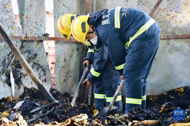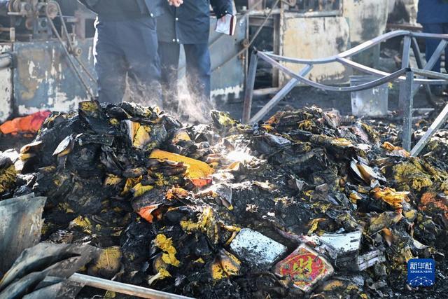 11月21日,工作人员正在火灾现场调查取证。新华社记者 徐凯鑫 摄