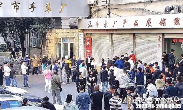 排队的人越来越多,人群几乎占据整片空地,偶有车辆要驶进手表厂,需人群缓缓空出一个缺口。
