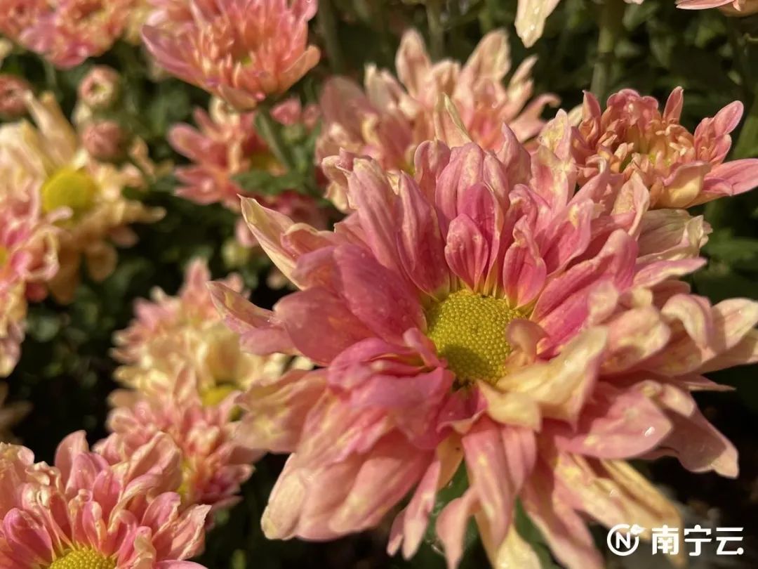 11月23日,记者在青秀山东盟友谊园看到,作为此次菊花展的展示点,色彩缤纷的各种菊花已开满园。菊花展采用立体花艺、动植物造型等展示手法进行造景,营造出错落有致、层次分明、类型丰富的菊展景观。
