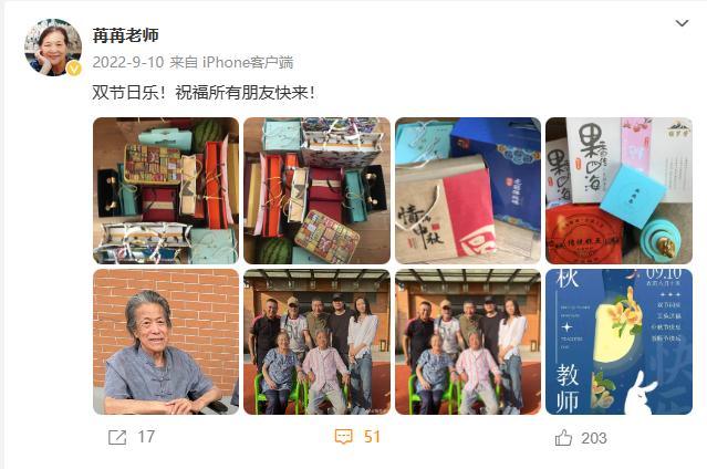 翻看马精武妻子李苒苒老师的微博,最后一条更新的内容是与学生们聚会的合照。当时的马精武看上去精神矍铄,状态很不错。