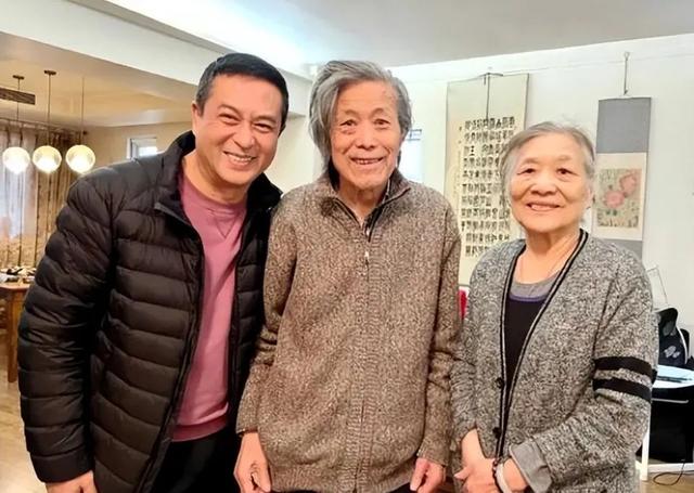 马精武的学生张嘉益与他开心合影,照片中三人都笑得很开心。