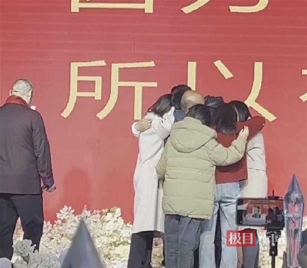 随后,解清帅的父母、哥哥、妹妹上台,一家人紧紧相拥而泣。