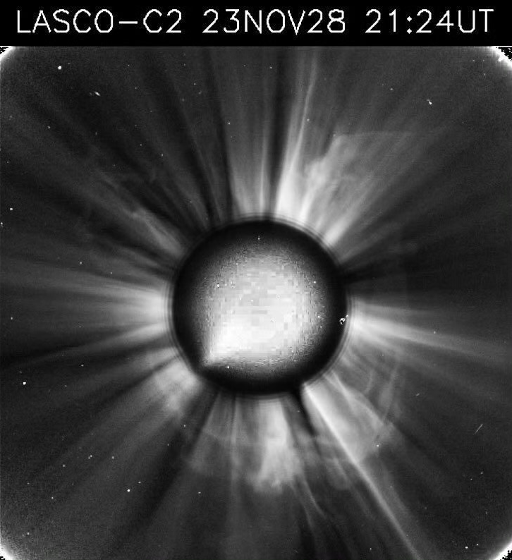 这次极光与大地磁暴事件的源头,正是北京时间11月29日凌晨,由一次太阳耀斑爆发引发、面向地球的晕状CME事件。虽然这次CME事件对应的太阳耀斑事件不强(仅为M9.9级),但由于特殊的晕状结构,也在12月1日抵达地球时造成了大磁暴事件。