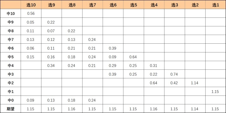 “不能光看中奖概率,还要看每次中奖获得多少奖金,也就是计算中奖期望值。”根据李永乐的计算,虽然不同玩法中奖率差别很大,但是返还奖金的数学期望值大约都在1.14-1.16之间,平均大约1.15。