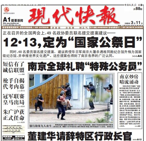 现代快报2005年3月11日A1版报道