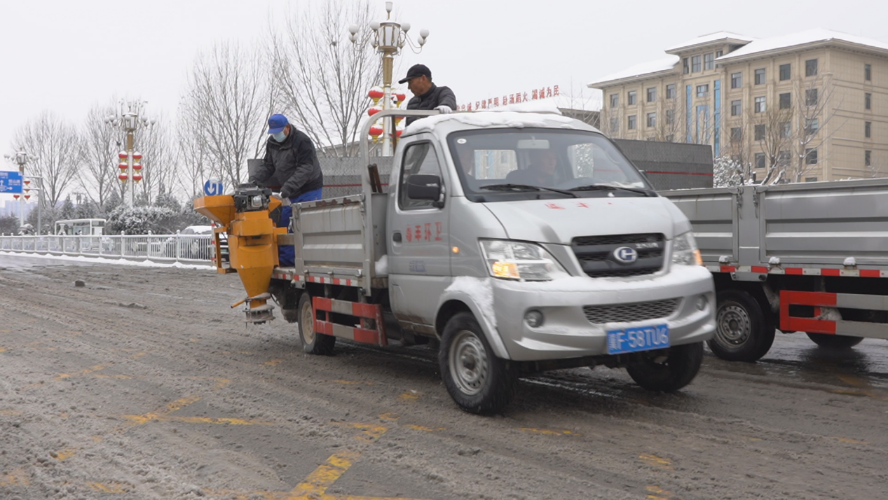 除雪车辆连夜进行除雪融冰作业(央广网发保定市城市管理综合行政执法局供图)