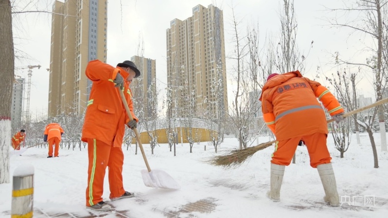 环卫工人奋战在除雪作业一线(央广网发保定市城市管理综合行政执法局供图)