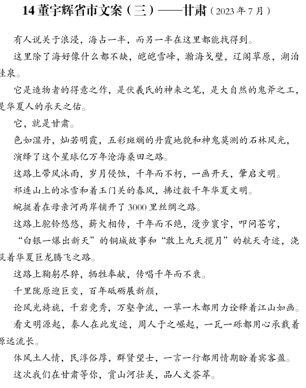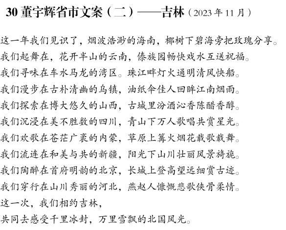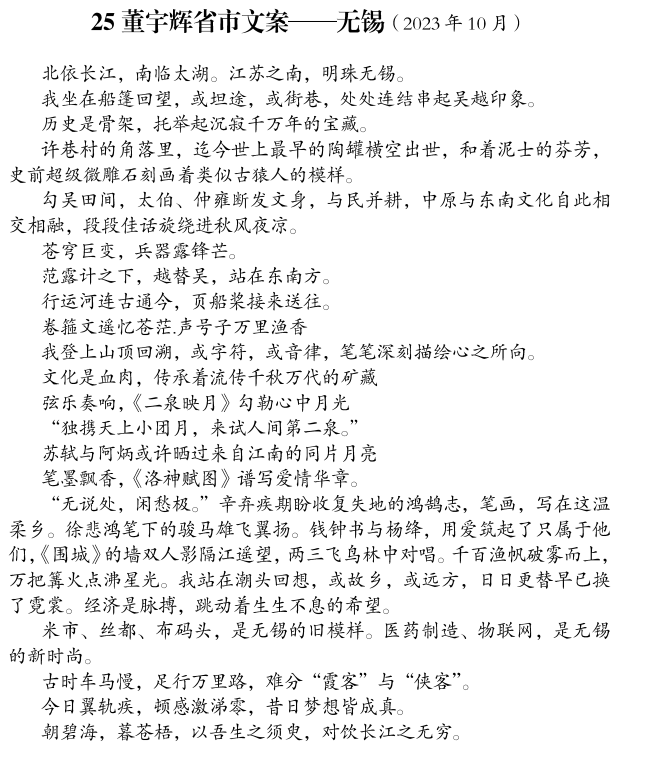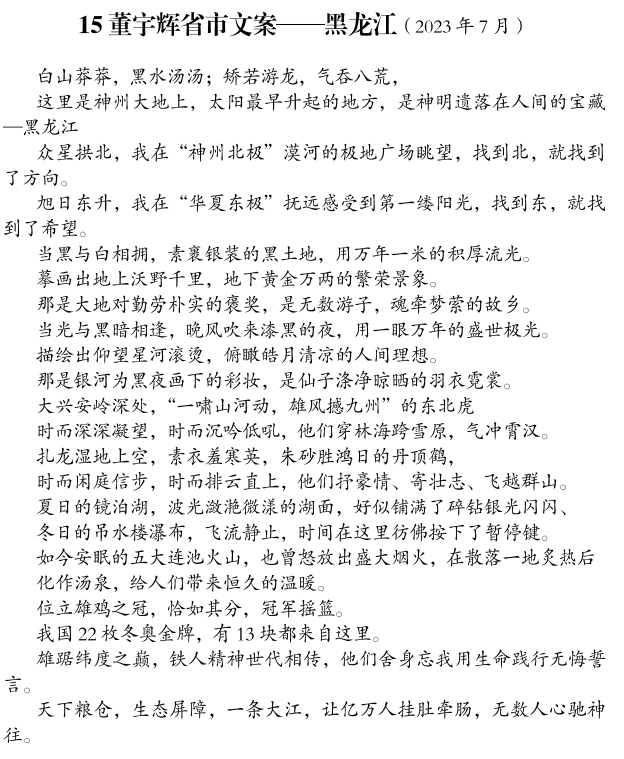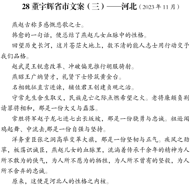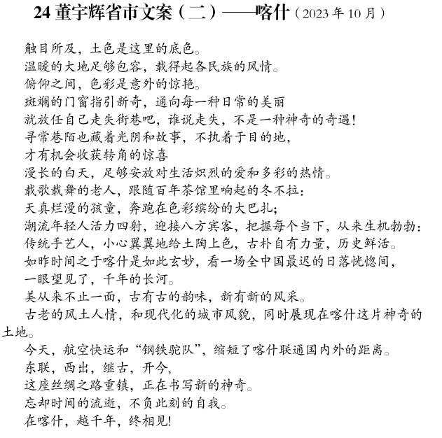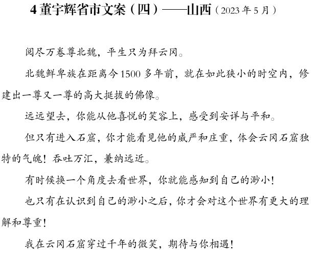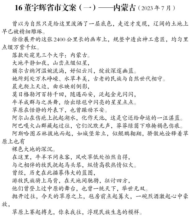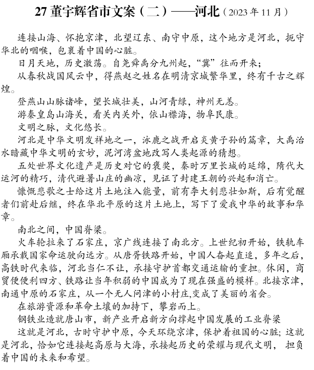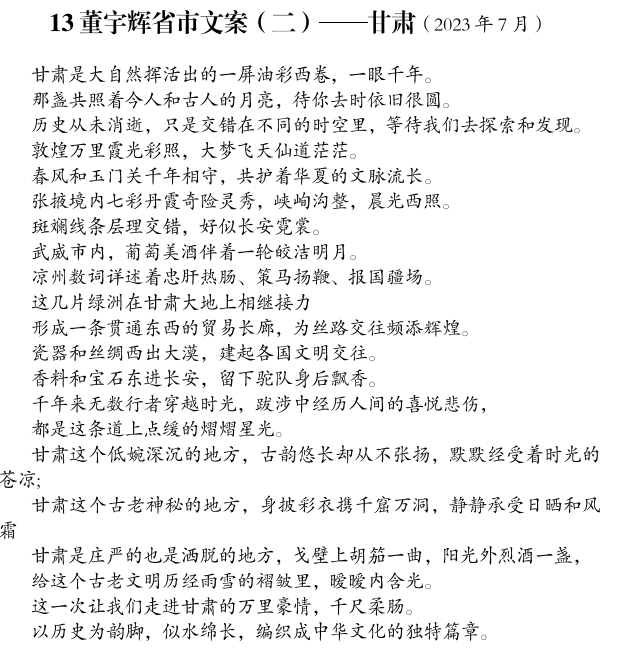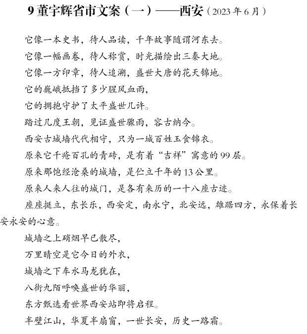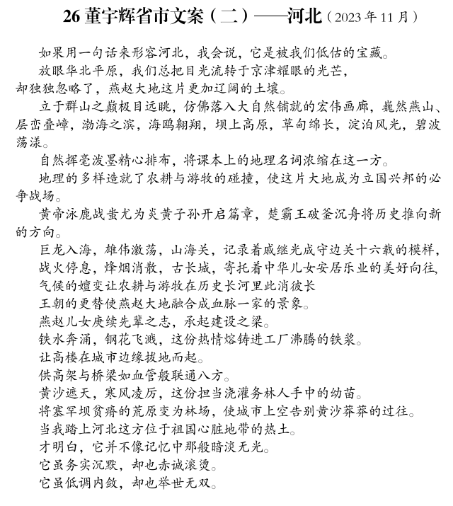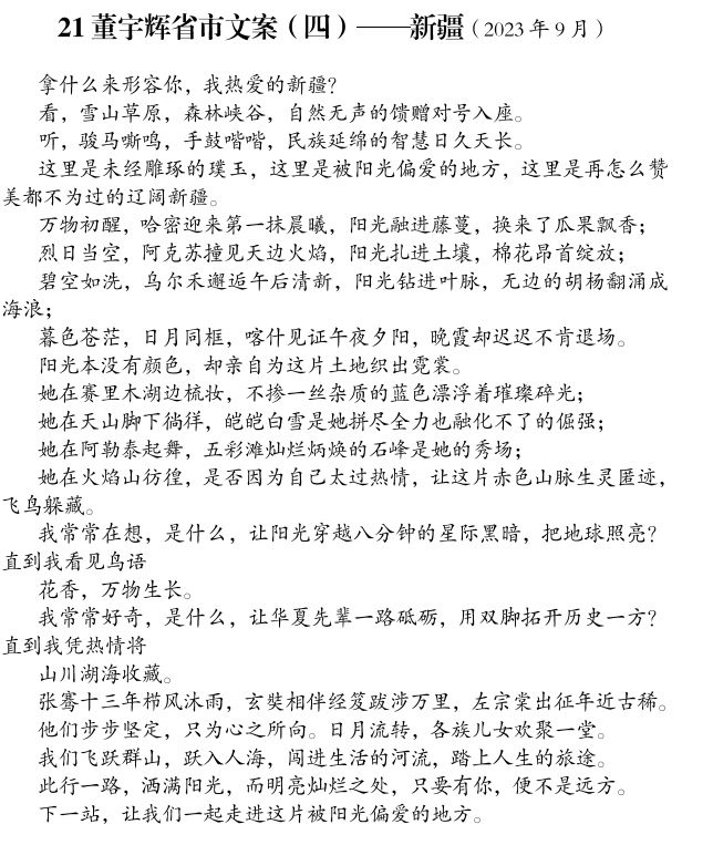 在“小作文风波”以外,我们能看到,董宇辉给各省份写下的小作文,富有美感,寥寥几语说透每个省份的前世今生和独特所在,堪称文旅宣传的满分文案。