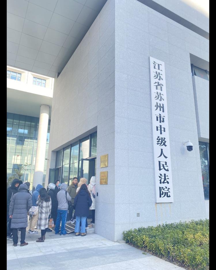12月21日上午9点30分,苏州“杀夫藏尸冰柜案”在江苏省苏州市中级人民法院开庭审理。当日9时许,法院外已聚集部分前来旁听的群众。