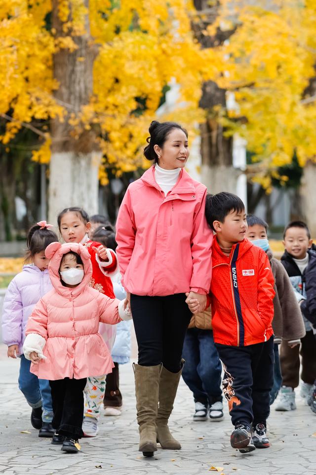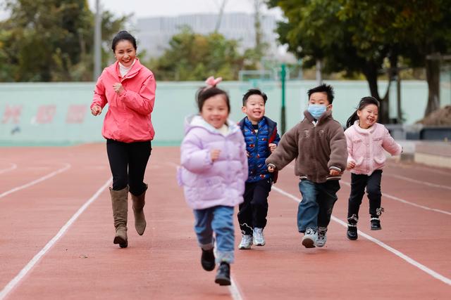 雍吉带着孩子们在户外活动(12月15日摄)。新华社记者 沈伯韩 摄