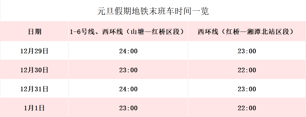 此外,2024年元旦假期如遇运营结束后高铁站大量旅客滞留,长沙地铁将在2号线长沙火车南站加开便民接驳列车,为市民游客提供便捷的夜间出行服务。