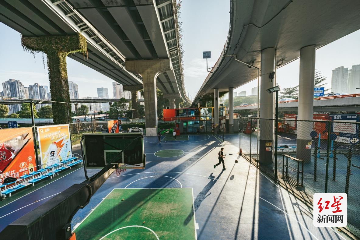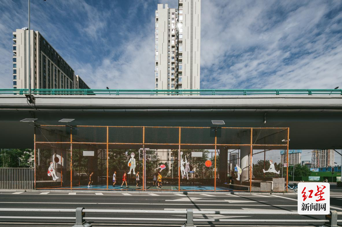 在双桥子立交桥下,通过“微改造”后,摇身一变,成为了“高颜值”的篮球主题体育运动公园。“每个立交桥下的‘剩余空间’会根据其不同的特点来设计空间的开发和利用。”张翔升说,这里充满了生活气息和人文氛围。