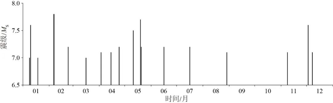 2023年全球7级以上地震震级时序图