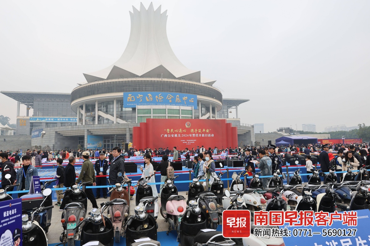 在该展区,两排整齐摆放的电动自行车也吸引了众多市民。“你看,这是电动自行车被盗后警察叔叔追回来的。”市民陈先生一边看展一边向儿子解释道。原来,这是南宁公安机关经过长达半年的侦查,打掉了一个常年在南宁市盗销电动自行车的犯罪团伙,抓获犯罪嫌疑人8名,追缴被盗电动自行车300余辆,现场展示的便是部分追缴回的车辆。