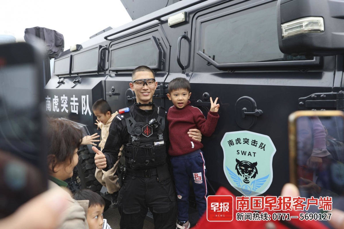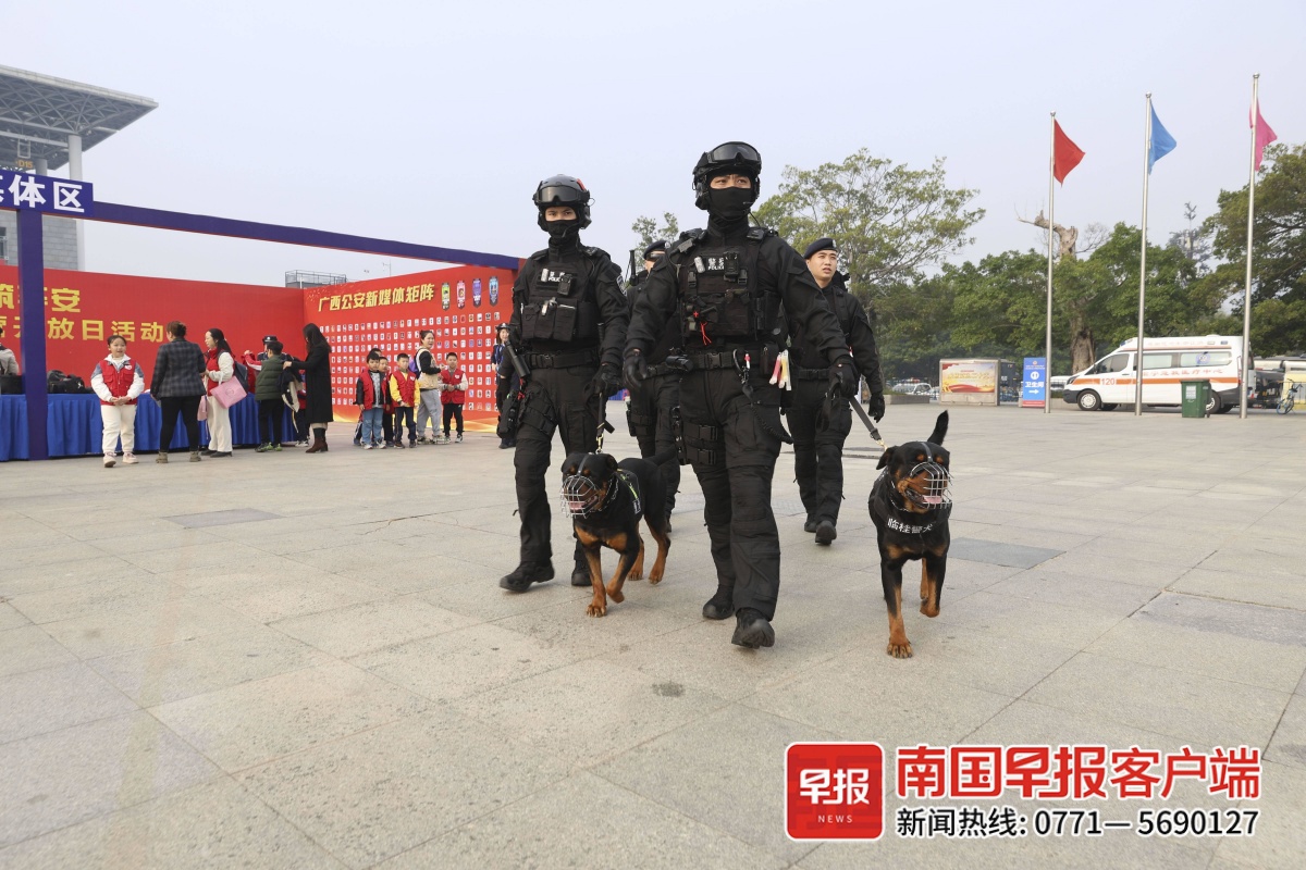 为庆祝即将到来的第四个中国人民警察节,1月6日,“警民心连心 携手筑平安”广西公安机关2024年警营开放日活动在南宁国际会展中心广场举行。当天共有6.8万人到现场参观了解广西公安打击犯罪战果,并零距离与帅气特警、可爱警犬互动,领略广西公安民警的别样风采。