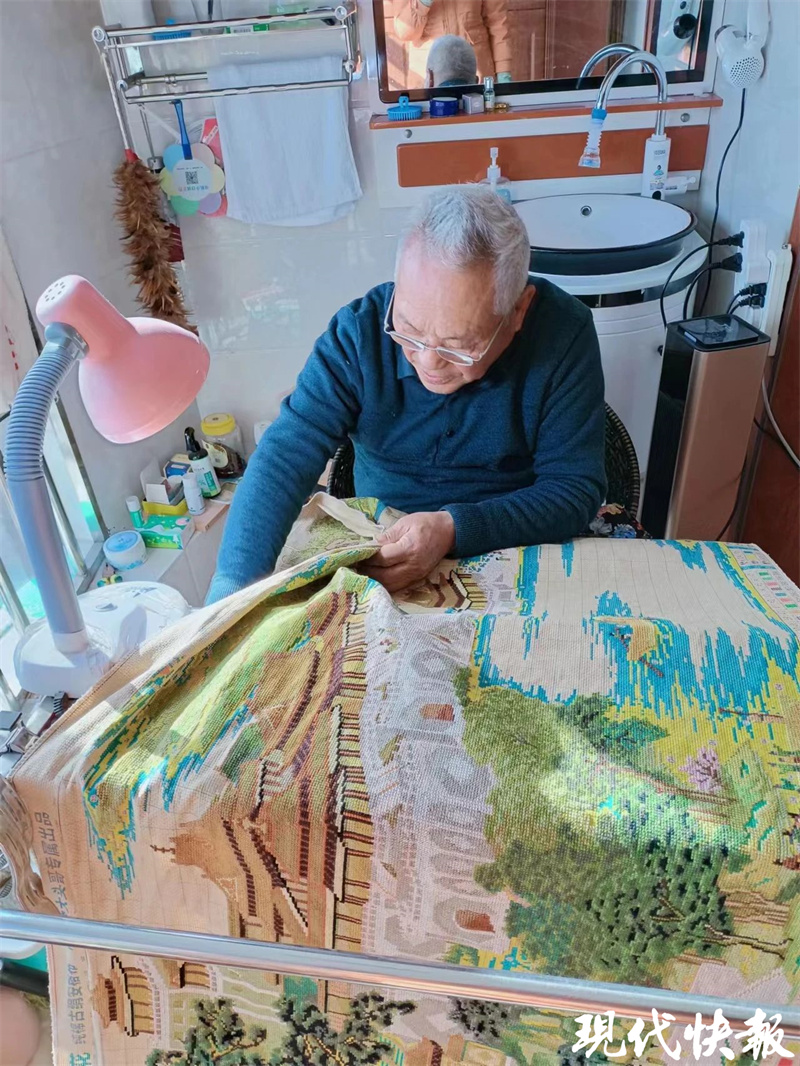 站在自己的作品前,看着栩栩如生的画卷,想着它陪自己度过的日子,孙国治百感交集。“6年的努力终于完成了这幅作品,我很感谢我的老伴对我的支持,她每天帮我穿针引线,在默默地支持我,在互帮互学中也让我们的晚年生活变得不仅有长度也有厚度。”孙国治说。通讯员殷开军现代快报+记者王晓宇