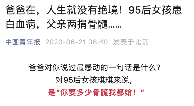 在当年5月20日(520)那天,她问网友收到过最珍贵的礼物是什么,她说:“今天我收到了爸爸的干细胞。”