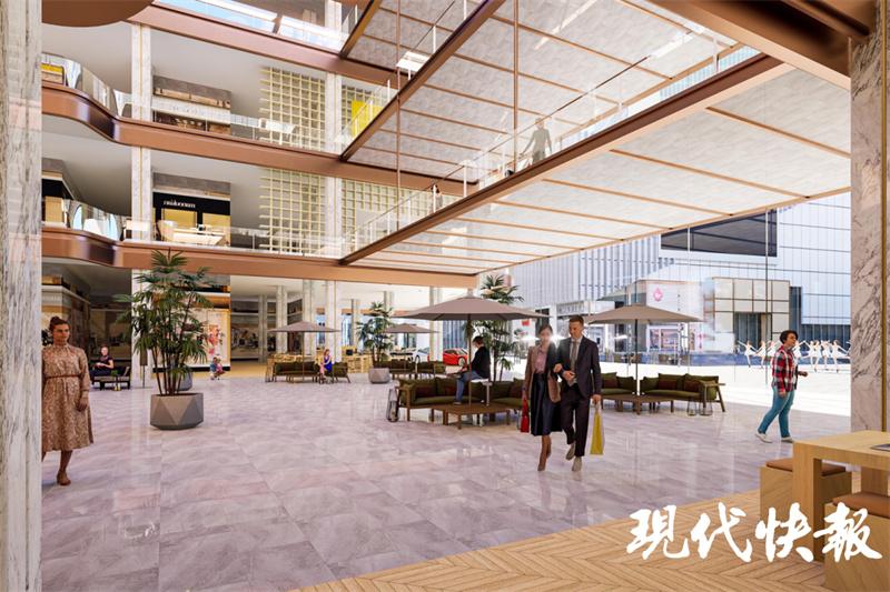 从此次曝光的效果图来看,现代快报记者发现本次中央商场改造的是面向莱迪广场的那栋楼。原外立面有较强的年代感,改造后将采用纯玻璃幕墙,入口处规划流线型玻璃穹顶,整体看上去更通透明亮、现代感十足。商场内部尤其是一楼牺牲了不少可租赁面积,打造挑高中庭和开放式休息区,香槟色金属线条装饰看起来颇有质感,整体空间变得更开阔敞亮。